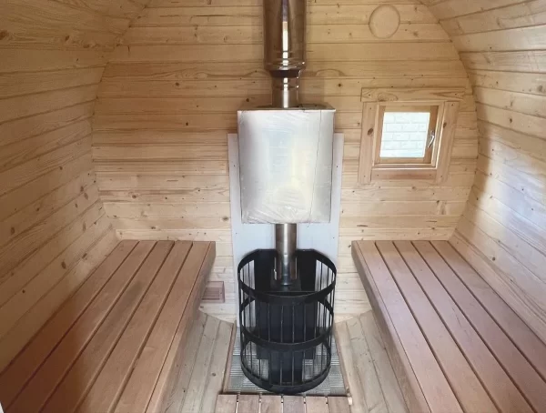 Оптимальный вариант бани-бочки с двумя помещениями: парной и просторным предбанником.