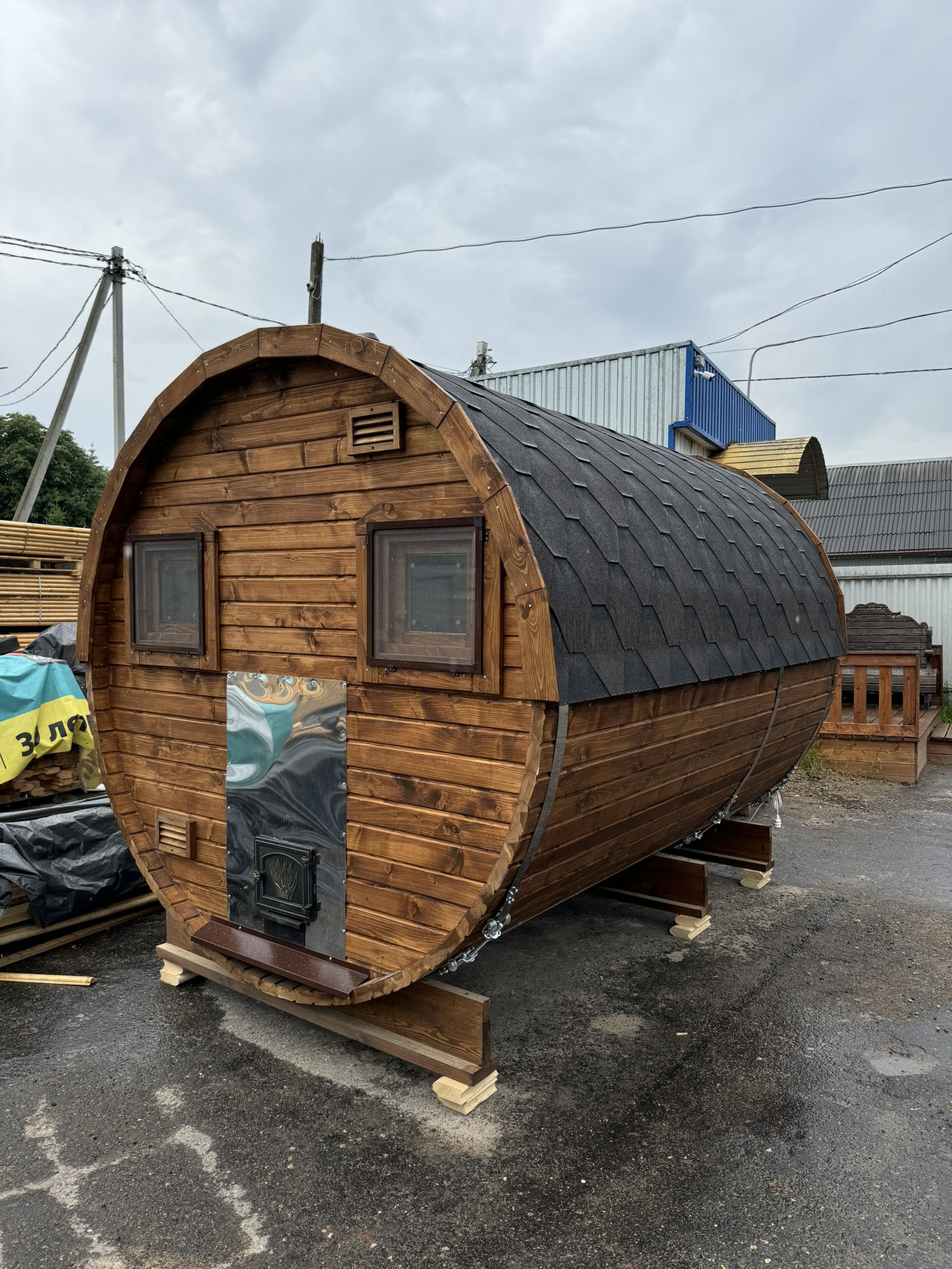 Баня-бочка (3 м) с козырьком