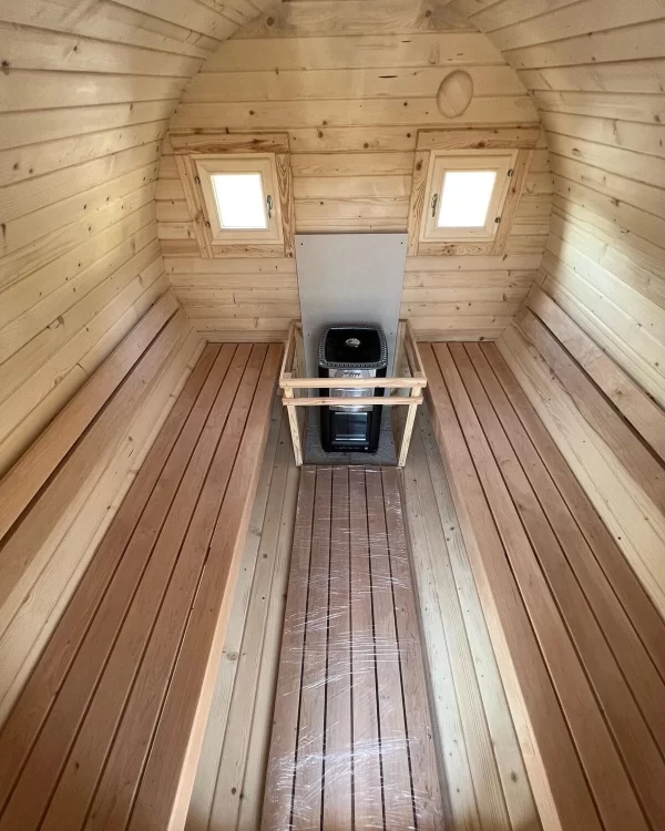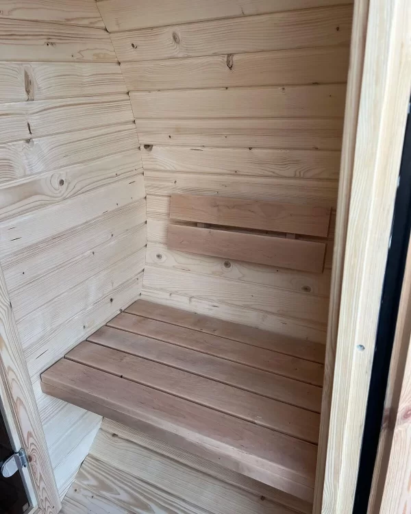 Самый оптимальный вариант для дачного участка — в этой бане уже 2 помещения: парилка и комната отдыха, поэтому ею можно будет пользоваться и в холодное время года.
