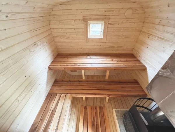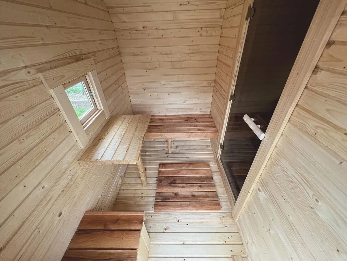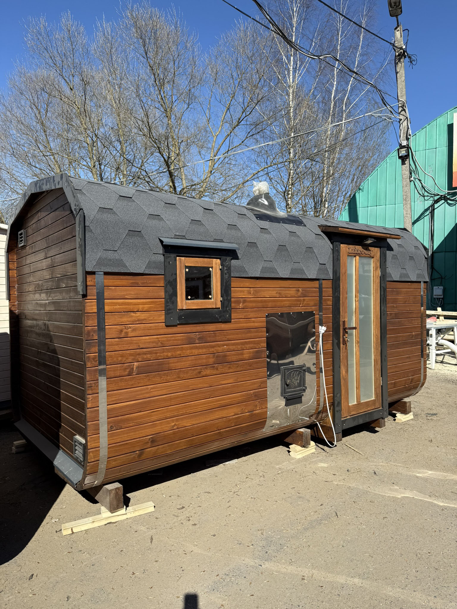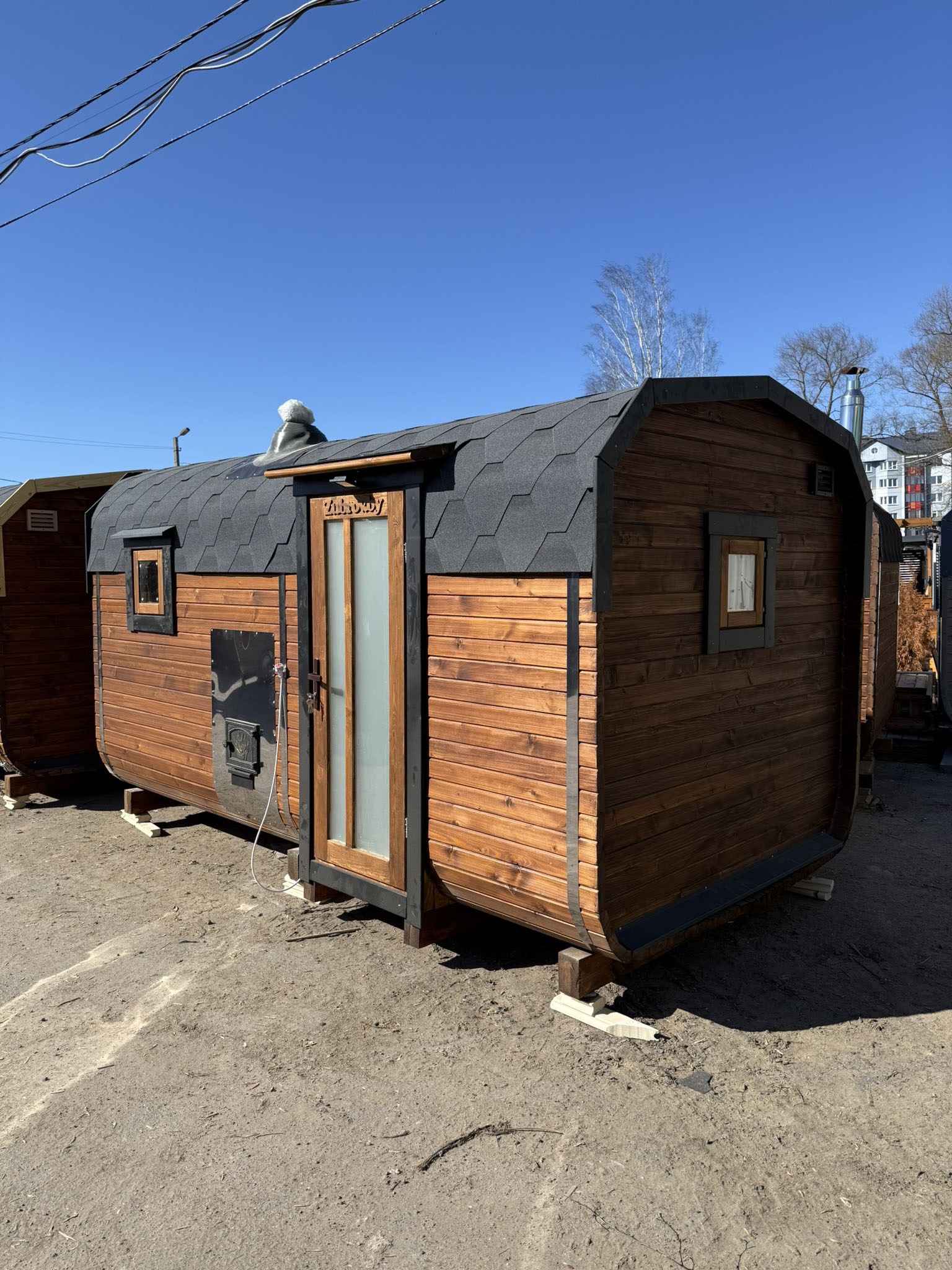 Размеры: 4×2,3 м, на 4-5 человек. Удобная парилка, зона отдыха и компактная терраса. Идеально подходит для загородных участков.