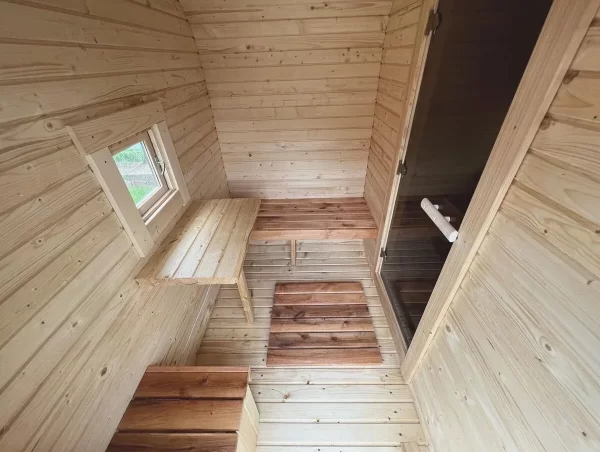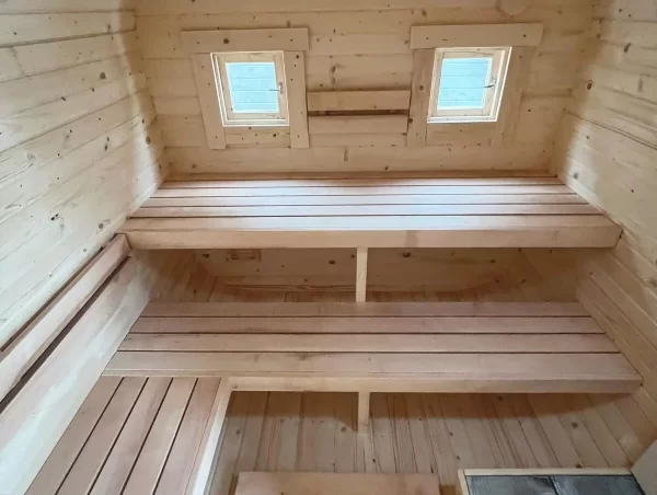 Увеличенный вариант квадро-бани 3м, но с более просторной комнатой отдыха.